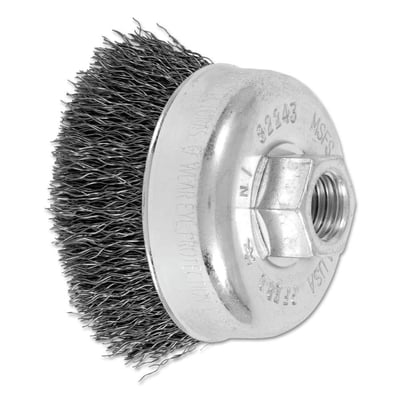 Loading product details...Mini Crimped Cup Brush, 2-3/4 in Diameter, 5/8 in -11 Arbor, 0.014 in Steel Wire